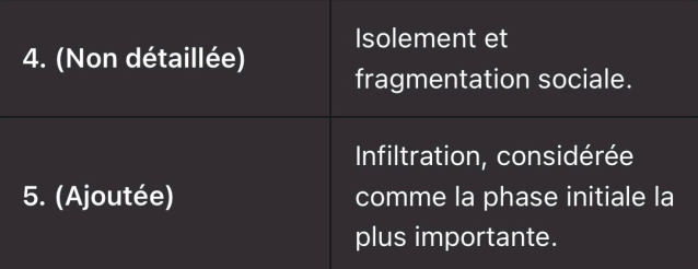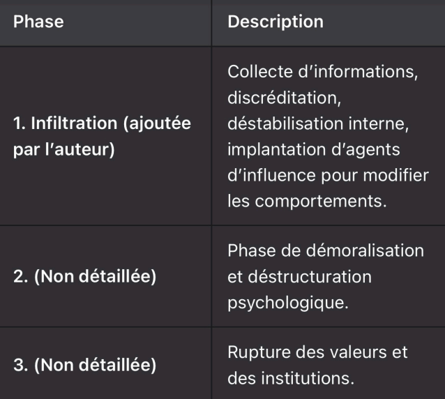 plusieurs phases visant à détruire la société, la psychologie et la pensée de l’intérieur. L’auteur